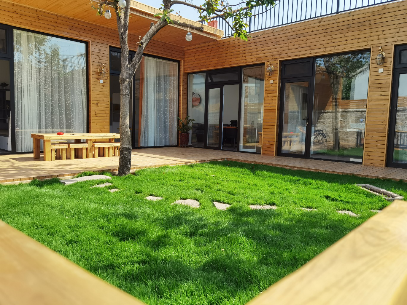 建筑内院共计300平米,现有院落1处,可同时接待10人住宿。在这里您可以专享墙外园林2000平米,与萌宠小动物共享田园时光,亲手采摘有机果菜和膳食中草药,同时还有优质农产供您选择,专业的管家一站式服务,让您享受到最好的本地生态与文化,适合带老人和孩子一起享受属于一家人的天伦之乐。